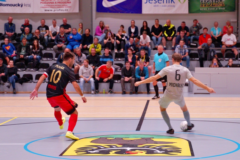 Jeseník i tak naprosto dominoval a to především v první půli, kterou hosté přečkali za neodpovídajícího výsledku díky výbornému gólmanovi a také pěkné porci štěstí. Vůbec první střela hostů, mířící alespoň mimo brankovou konstrukci, přišla až po odehrání větší části prvního dějství, již za dvoubrankového vedení domácích.